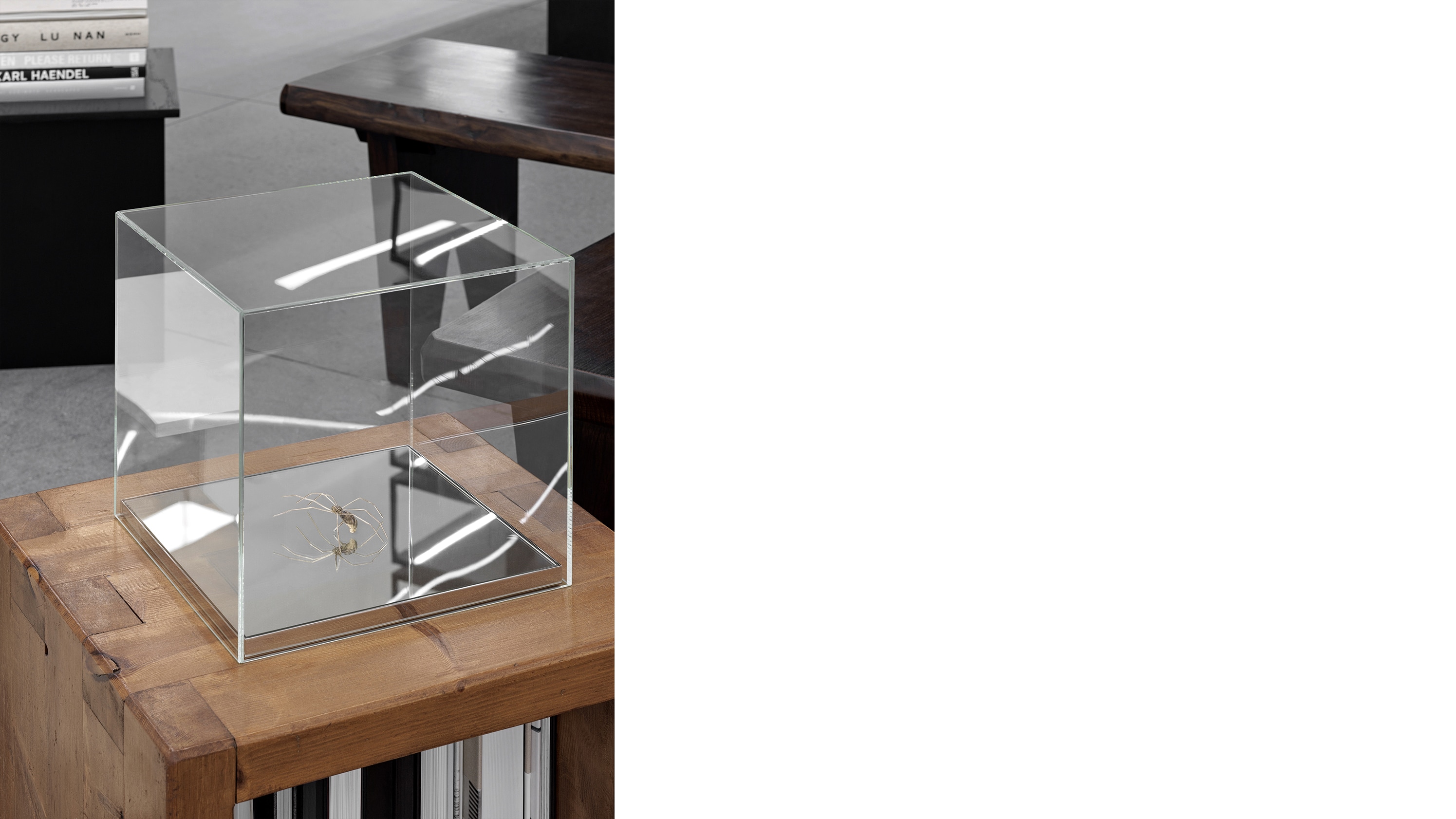 RAY’S DUNES 2 HONEYCOMB (2018) CENTERS UPON IDEAS OF SERENITY AND CHAOS. REMINISCENT OF A WIND-CHIME, A FEMININE TRINKET DESIGNED TO MAKE SOOTHING SOUNDS OUT OF THE TURBULENT BREEZE, THIS ARCH-SHAPED SCULPTURE FEATURES TWO SIZABLE SILVER CHAINS WITH A SLAB OF HONEY ONYX DANGLING AT EACH END. THIS VARIETY OF MINERAL ECHOES THE SURFACE OF VENUS IN COLOR AND SWIRLING DESIGN. WHILE THIS PLANET DEDICATED TO THE GODDESS OF LOVE MAY SEEM TEMPERATE AND PARADISIACAL, THE VIEWER KNOWS THAT THIS IS SIMPLY NOT TRUE. MODERN ASTRONOMY ASSERTS THAT VENUS’S ATMOSPHERE IS TUMULTUOUS, INHOSPITABLE, AND RIFE OF TOXIC GREENHOUSE GASES.